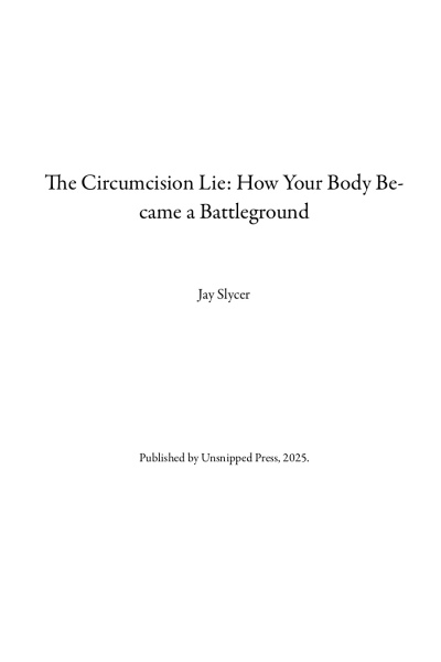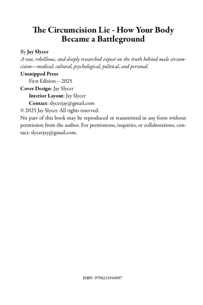 In The Circumcision Lie, Jay Slycer rips the curtain off one of the world’s most normalized yet misunderstood surgical procedures: male circumcision. From ancient scripture to modern medical propaganda, from African initiation camps to billion-dollar global health campaigns, this book takes you on a shocking, eye-opening, and emotionally raw journey through the real truth about circumcision.